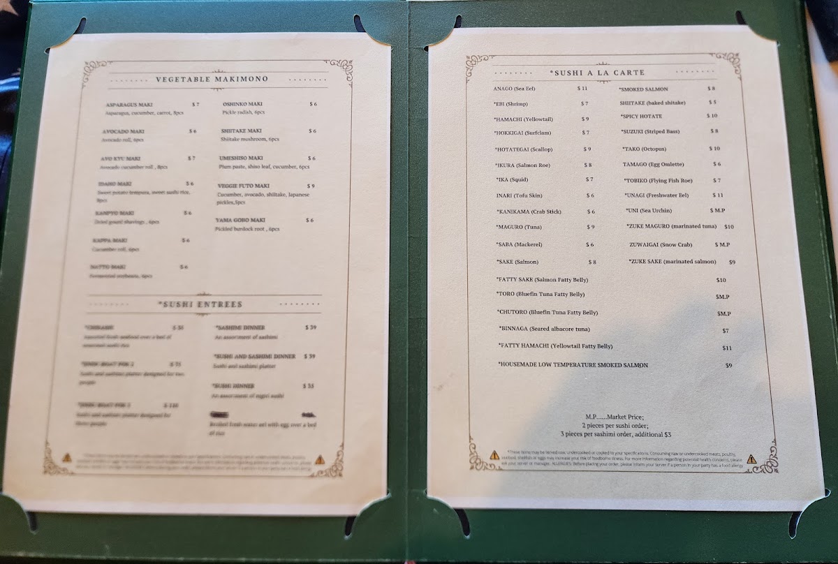 Assorted Sushi and Maki. Sushi (Sake, Maguro, Hamachi, Suzuki, Binnaga, Tamago) Maki (Kappa Maki, Avocado Maki, California Maki, Spicy Tuna Maki, Alaskan Maki, Boston Maki, Una-avo Maki)